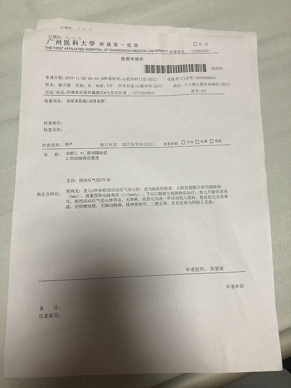 小雅来广州做的检查显示,其肺动脉高压重度