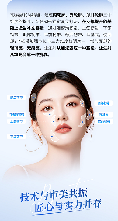 最后是合理的七维注射,这是陶泓旭主任在微整形领域的一大创新。他巧妙地将线、面、立体、时空、意识沟通、动态平衡与情感共鸣这七大维度融入注射技术中,全面而深入地考虑顾客的面部特征、个人需求以及潜在的情感表达。这种注射方式不仅让效果更加自然、立体,还能有效避免注射后的不适和并发症。