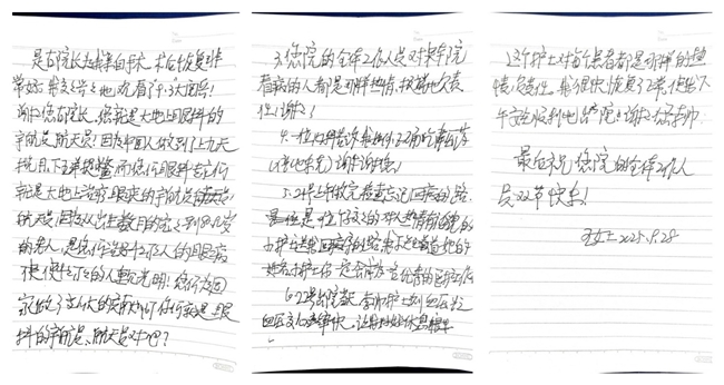 更让老人欣喜的是,视力恢复后,她如愿以偿地观看了 “9・3 大阅兵”。对于术前日常视物都困难的她而言,能现场清晰见证祖国“科技强国生动画卷”,无疑是天大的惊喜,也正因如此,她在感谢信中动情地将谷威院长称作 “眼科的宇航员、航天员”,称赞谷院长如同航天英雄探索宇宙般,在眼科领域不断突破,为无数患者点亮了 “视觉星空”。
