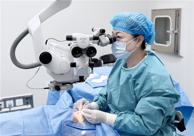 为更好地帮助高度近视患者应对眼部风险,谷威院长持续探索改良手术治疗方案。在后巩膜加固术的临床应用中,手术材料的选择尤为关键,北京爱尔英智眼科医院采用的异体巩膜,是目前该手术的最佳材料,术后无排异反应。