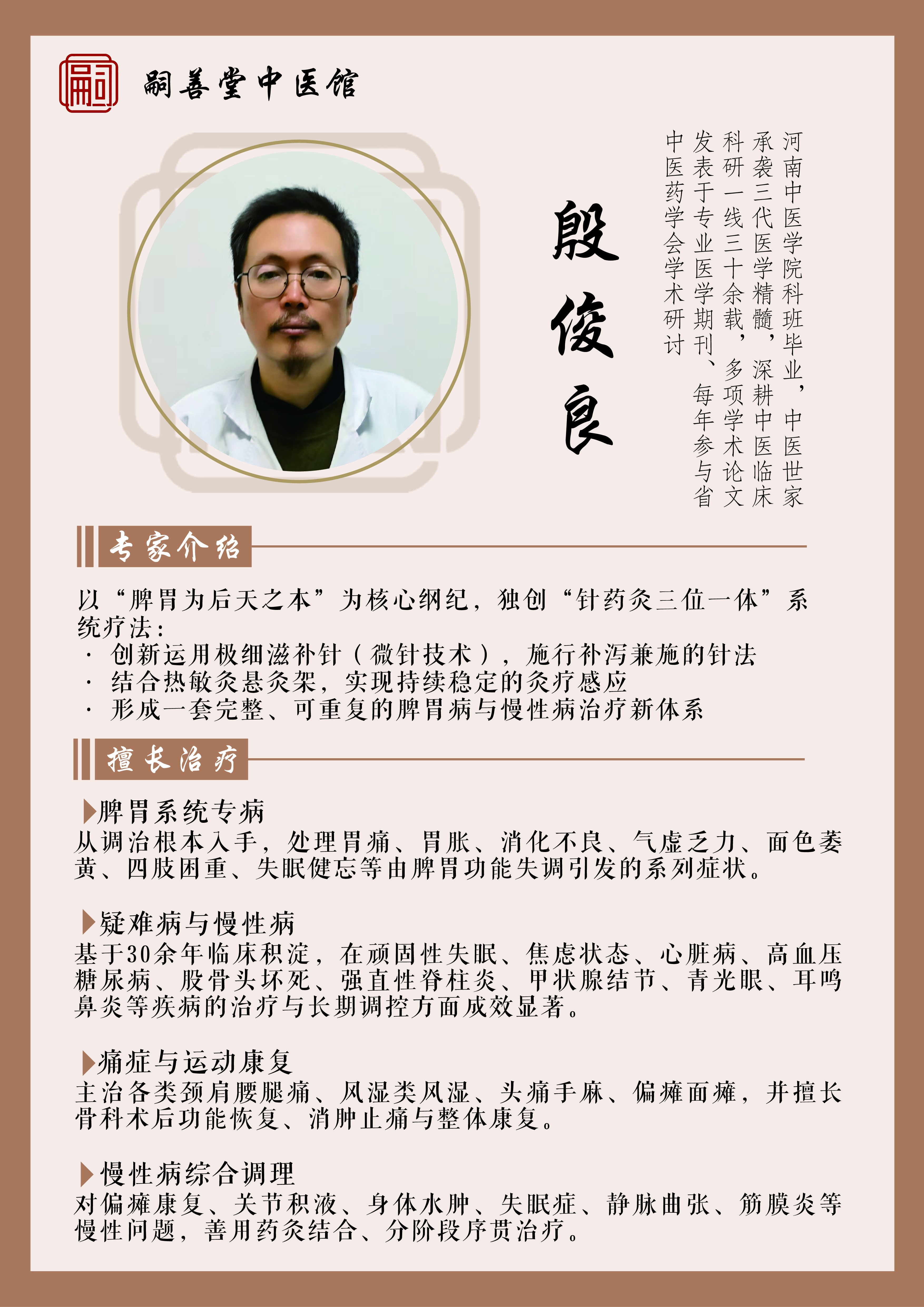 作为一位资深中医师,殷俊良始终秉持"医为仁术"的行医理念。在他看来,医学创新不仅要追求技术突破,更要体现人文关怀。这种理念贯穿于他诊疗过程的每一个细节——从细致的问诊到精准的治疗,从用药选择到康复指导,无不体现着一位医者的仁心与担当。