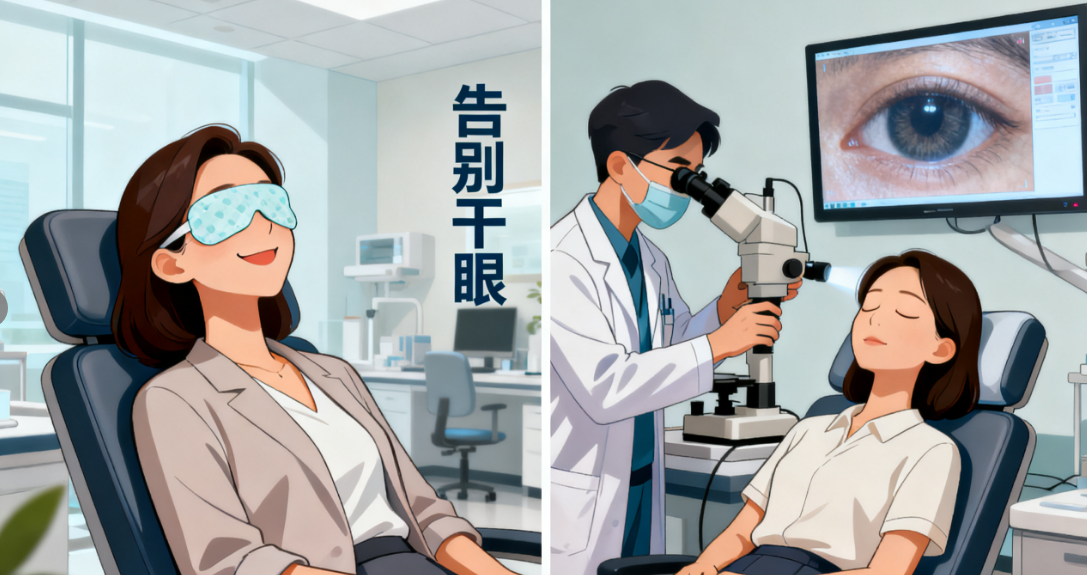 治疗过程如同给眼睛做“美容护理”:先通过专业仪器清除眼表残留的油脂、灰尘和炎性物质,再使用温热敷贴打开睑板腺开口,促进油脂分泌;最后搭配人工泪液、营养眼膏等,为眼表补充水分和营养,同时放松眼部肌肉。
