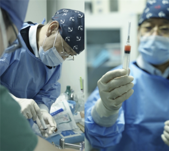 66岁的患者徐先生长期受膝关节疼痛、活动受限困扰,严重影响日常生活。此前虽接受过关节镜手术,但行走时仍感不适。针对其复杂病情,贾全章教授团队决定采用引进的自体脂肪基质成分ADRCs再生医学方案。该技术通过全球领先的全封闭自动化处理系统,从患者自身脂肪中高效、标准化地分离富集出具有再生修复功能的ADRCs,并将其精准注入膝关节腔内。