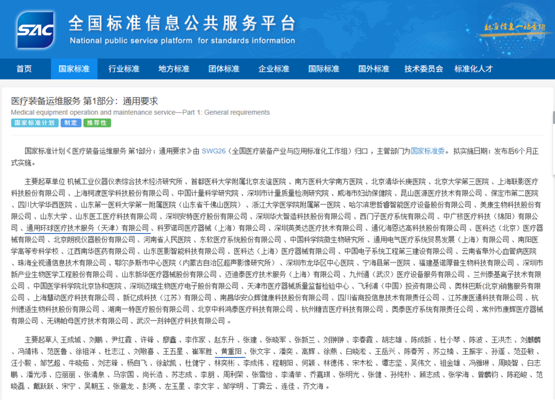 首个医疗装备运维国家标准发布,环球技服为行业贡献“标准力量”!
